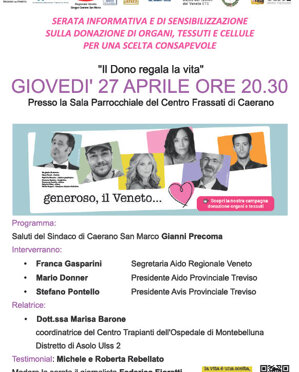 Serata informativa e di sensibilizzazione sulla donazione di organi tessuti e cellule per una scelta consapevole