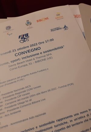 La località turistica di Bibione il 22 e 23 ottobre 2022 ospiterà i campionati nazionali ed europei di footbike integrando nelle competizioni i bimbi autistici che si vorranno tesserare con FIFB e a cui la federazione donerà i mezzi (le footbike) per gareggiare.