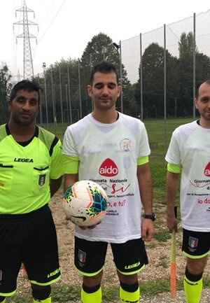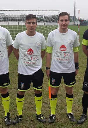 Giornata del Si, Aido Regionale Veneto con Comitato regionale Arbitri Veneto, gli arbitri in campo con la t-shirt di Aido