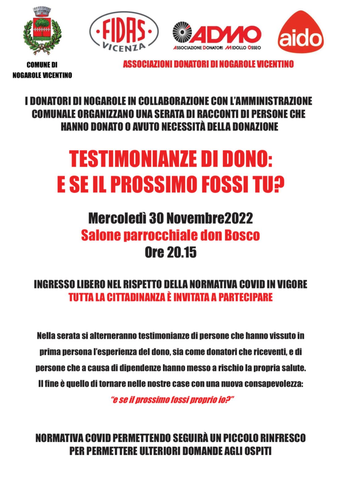 A Nogarole Vicentino "Testimonianze di Dono: e se il prossimo fossi TU?